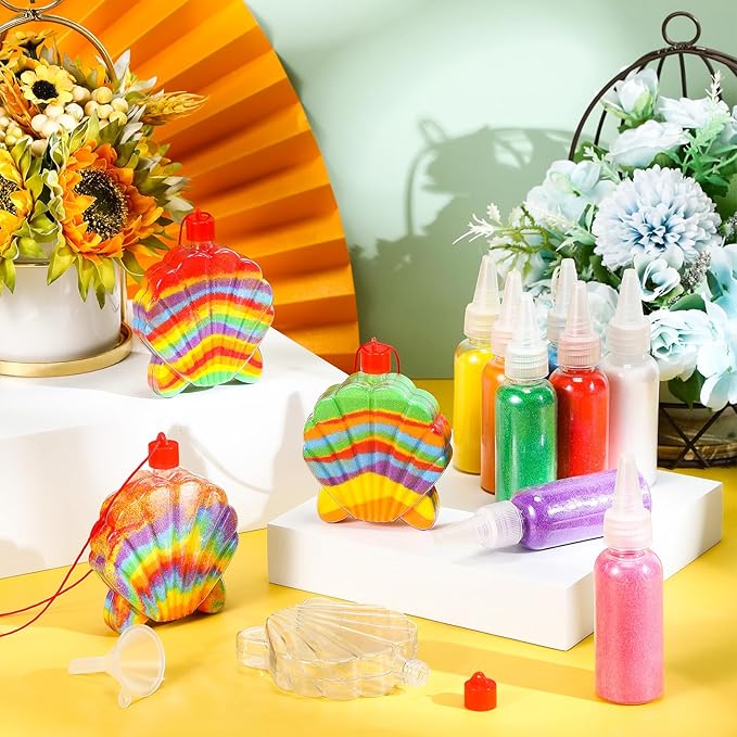 - Unleash your Creativity with DIY Fun: with our shell shaped sand art bottle necklaces, boys and girls can truly express their artistic side; The activity of carefully filling these sand bottles with sand of varied colors will not just be a fun pastime but will also stimulate imagination and enhance motor skills; This creative task can instill a sense of achievement and boost confidence, making it a meaningful and enjoyable activity