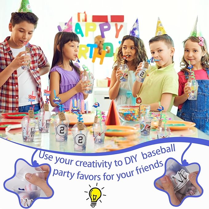 - Fun to DIY Your Party Favors: You can put baseball whistles, mini baseball and other small items into the goody cups, close the lid, and you can decorate it with the stickers, insert the cute straw, tie the thank you tag to the straw with twist ties, decorate a novelty cup for your friend, which will bring more joy to your party.