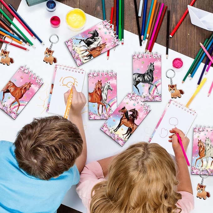 - Suitable Size: The horse goodie bags measure about 11.4cm/4.4” * 21cm/8.2’’; each horse keychain measures about 4.5cm * 4.7cm/ 1.77 x 1.85 inches, The colorful horse silicone bracelet measures about 2.5 inches in diameter, horse mini notebook measures about 10cm/3.9in x 6cm/2.36in.