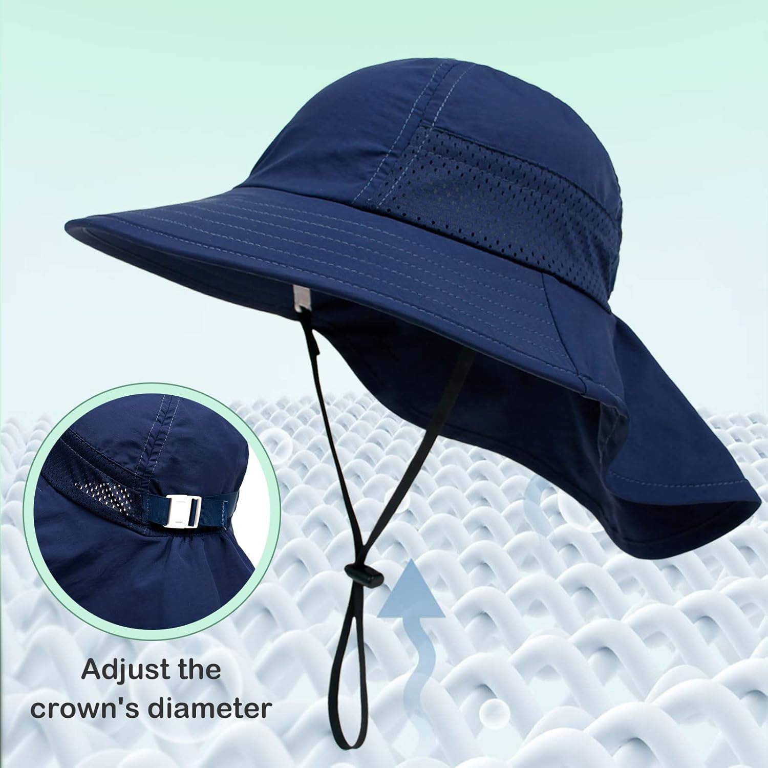 XIAOHAWANG Girls Sun Hat Baby Beach Hats Boys UPF 50+ Kids Summer Protection Cap Toddler Breathable Caps Wide Brim Neck Flap