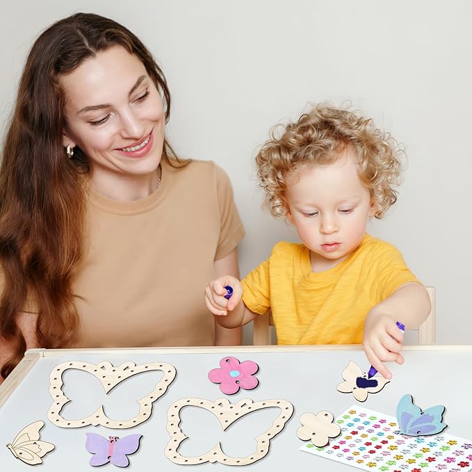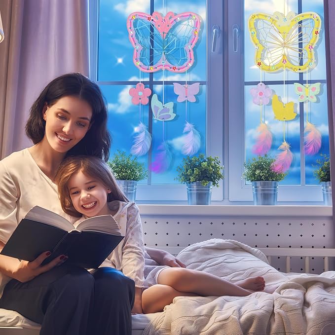 - Unfinished Wooden Butterfly Dream Catcher Craft for Kids: contains 8Pcs large-size wooden heart butterfly cutouts, 24 Butterfly wooden hearts cutouts, 100 feathers in Macaron color, and 8 packs of colorful cotton thread, offering endless decoration possibilities for kids, Paint You Own Cute butterfly Dream Catcher