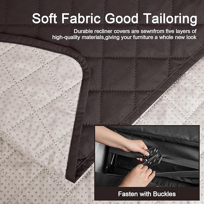 - Upgrade Anti -Slip Design: The back of the recliner chair cover is designed with a new upgraded non -slip large particles to reduce the sliding of the reclining chair cover. Easy to fit for your sofa recliner with our user manual. Just drape the furniture with our covers, tuck the excess fabric into the gap between the back and couch cushion. Use the elastic straps secure the slipcover stay in place firmly