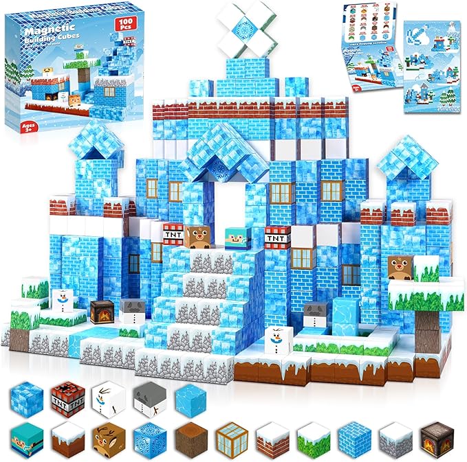 - 【 Build Frozen Castle Magnetic Cube Kit】Including 100 magnetic cubes in 16 colors. Idea booklet with the storyline and beautiful patterns, keep them busy in clever ways. Graceduck magnetic activity cubes are made of high-quality ABS material and crafted with round edges and the right size. Our magnetic cubes kit with super strong internal magnetic, which is easier for toddlers ages 3+ to stick the cubes together and make builds sturdy. Perfect STEM toys help kids gain a deeper understanding of the structure and learn about magnetic properties!
