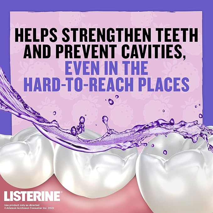 - 500-milliliters of Listerine Smart Rinse Alcohol-Free Mouthwash for Kids in a berry splash flavor to strengthen and protect teeth against cavities when used as part of a regular oral care routine