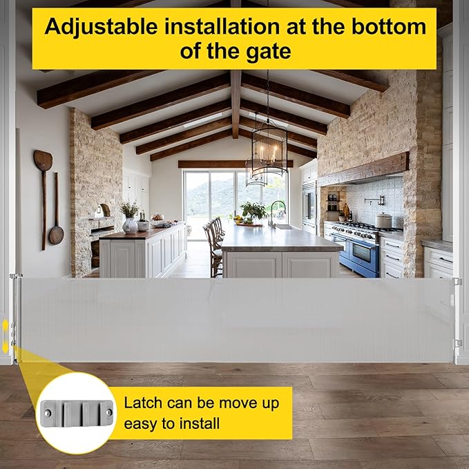 - [Baby Play Area] You can use the extra wide retractable baby gate to separate a safe play area for your baby in your home. Keep your dog out of the baby safety gate and do not disturb your baby.