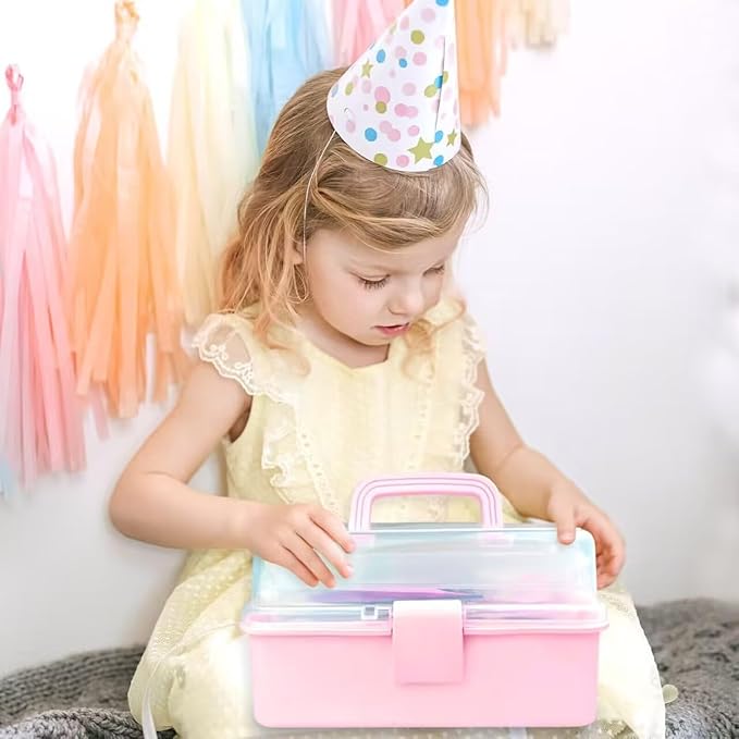 - 【Portable 3-Story Craft Box】The colorful storage box measures 10.2x5.7x5.1 inches. All art supplies are packed in a convenient and reusable 3-tier organizer. Comes with carrying handles for easy storage and transportation.