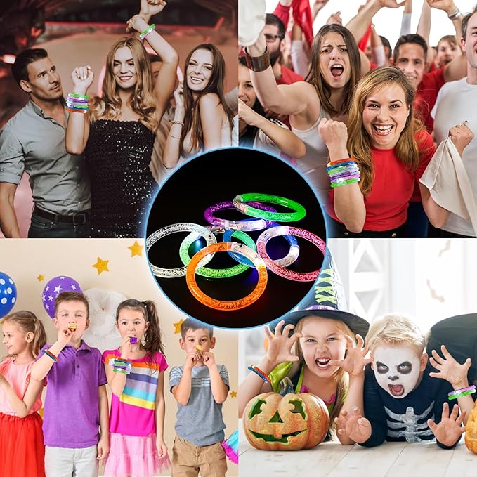 - Glow In The Dark Party Supplies: The glow bracelet is suitable for rave parties, music festivals, Halloween parties, birthdays, weddings, carnivals, concerts, New Year parties and other occasions. It glows beautifully in the dark, adding unlimited fun to your life.