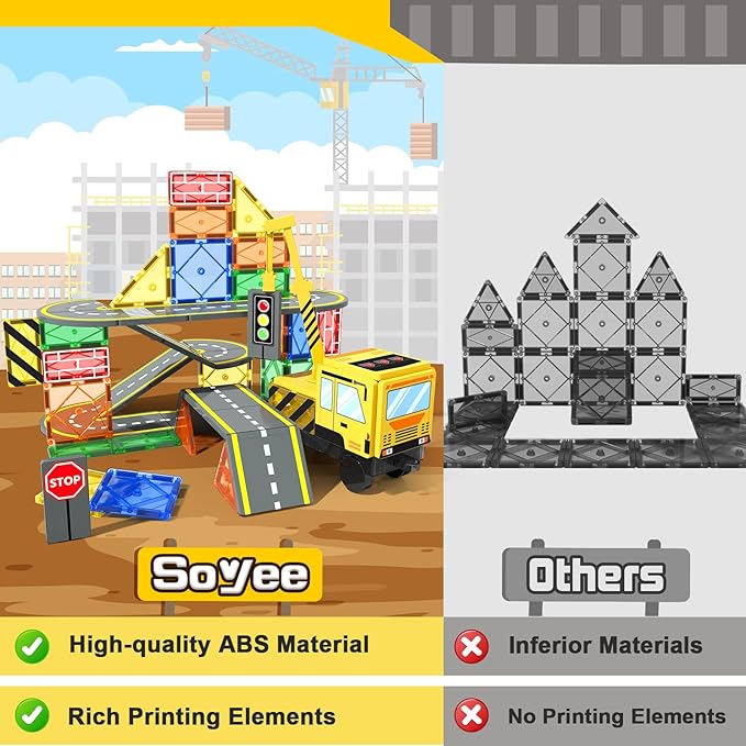 - 【QUALITY YOU CAN TRUST】 SOYEE Toys has been deeply involved in magnetic toys for decades, we focus on quality and kids' play experience, the magnetic building blocks are made of ABS material. Fun and unique way to introduce young minds to STEAM concepts like architecture and engineering