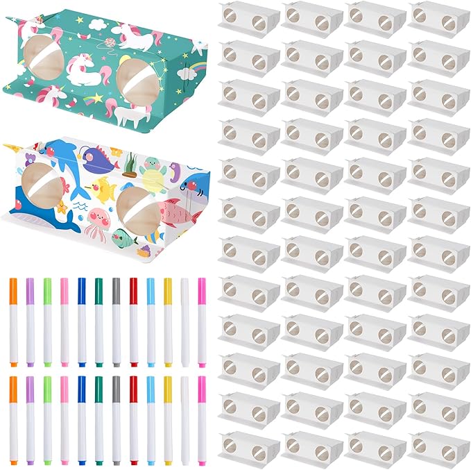 - Adequate Quantity: the package comes with 50 pieces of binoculars for boys and girls and 24 watercolor pens, providing enough quantity to fulfill the needs of a group event, school project, classroom activity or party; Whether you're planning a creative session or want to distribute thoughtful party favors, these cardboard binoculars cover your needs
