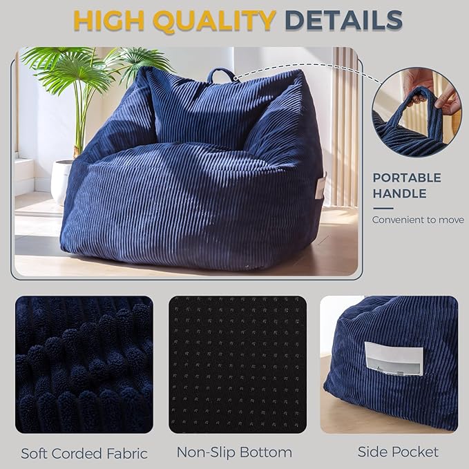 - User-friendly Design: Non-slip fabric on the bottom of the bean bag chair, which provides a stable and secure seating experience. Equipped with a top handle, the bean bag chair sofa can be easily moved to desired locations within your home, allowing for flexible use in different areas.