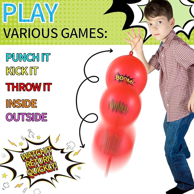 - Fun ball games: these colorful punch balls can be used for a variety of punching exercises to develop hand and eye coordination, and you and your child are sure to have fun.