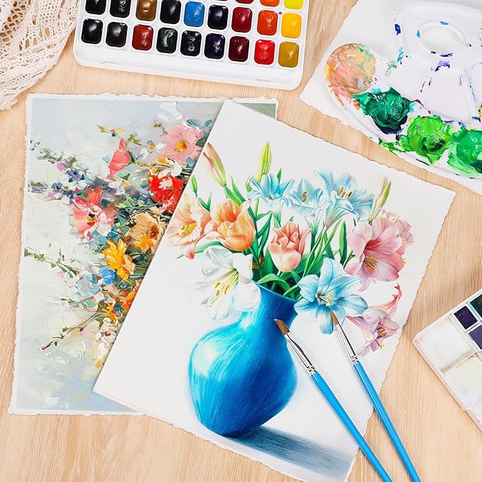 - 【Cotton Paper】Our watercolor paper is made of cotton, which has good water absorption and is not easy to pilling. It can allow the paint to be absorbed and distributed evenly, reduce the warping and bending of the paper, and make your paintings more perfect.