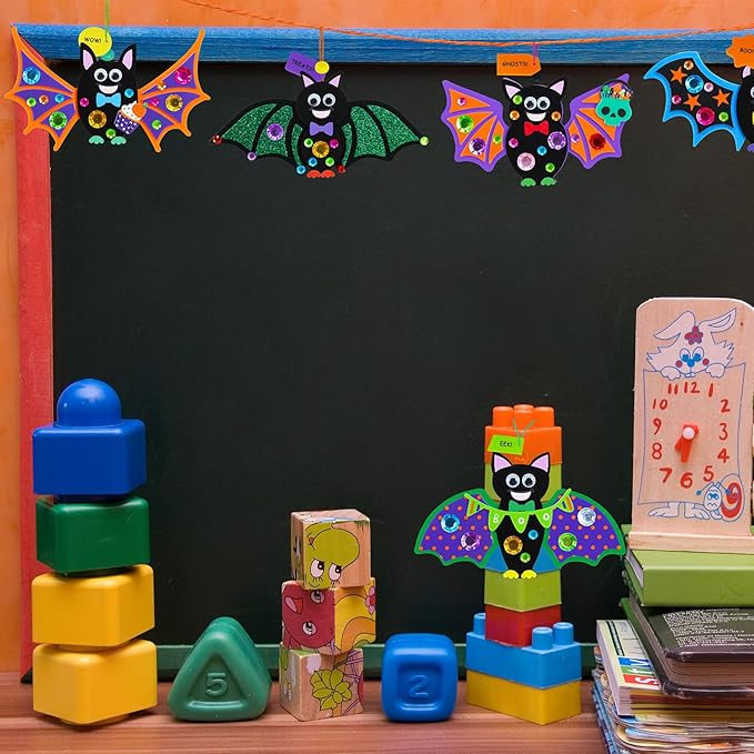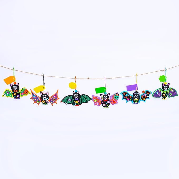 - Material: Made from 2mm thick, soft, tear-resistant foam, these Holiday craft kits stay bright even with repeated use. Each kit comes with self-adhesive foam stickers for easy assembly. To make a Halloween bat ornament, start by attaching a hanging cord. Place the bat body sticker in the middle of the foam base. Decorate with wings and Halloween-themed stickers. Add stickers for the face and feet, attach googly eyes for a fun look, and finish with sparkling gems for a festive touch.