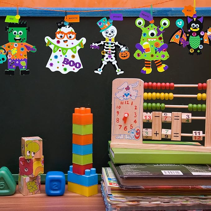 - Inspire Creativity and Celebrate with Joy: Dive into a world of fun with our charming Halloween craft kits.These kits allow kids to create cute and whimsical characters like a cute Bat, Ghost, Monster, Witch, Skeleton and Frankenstein. Children will be thrilled to display these Halloween ornaments in classrooms, on family trees, or around their homes, adding a joyful touch to the autumn Halloween festivities. Engaging in these craft activities spread the cheerful spirit of Halloween.