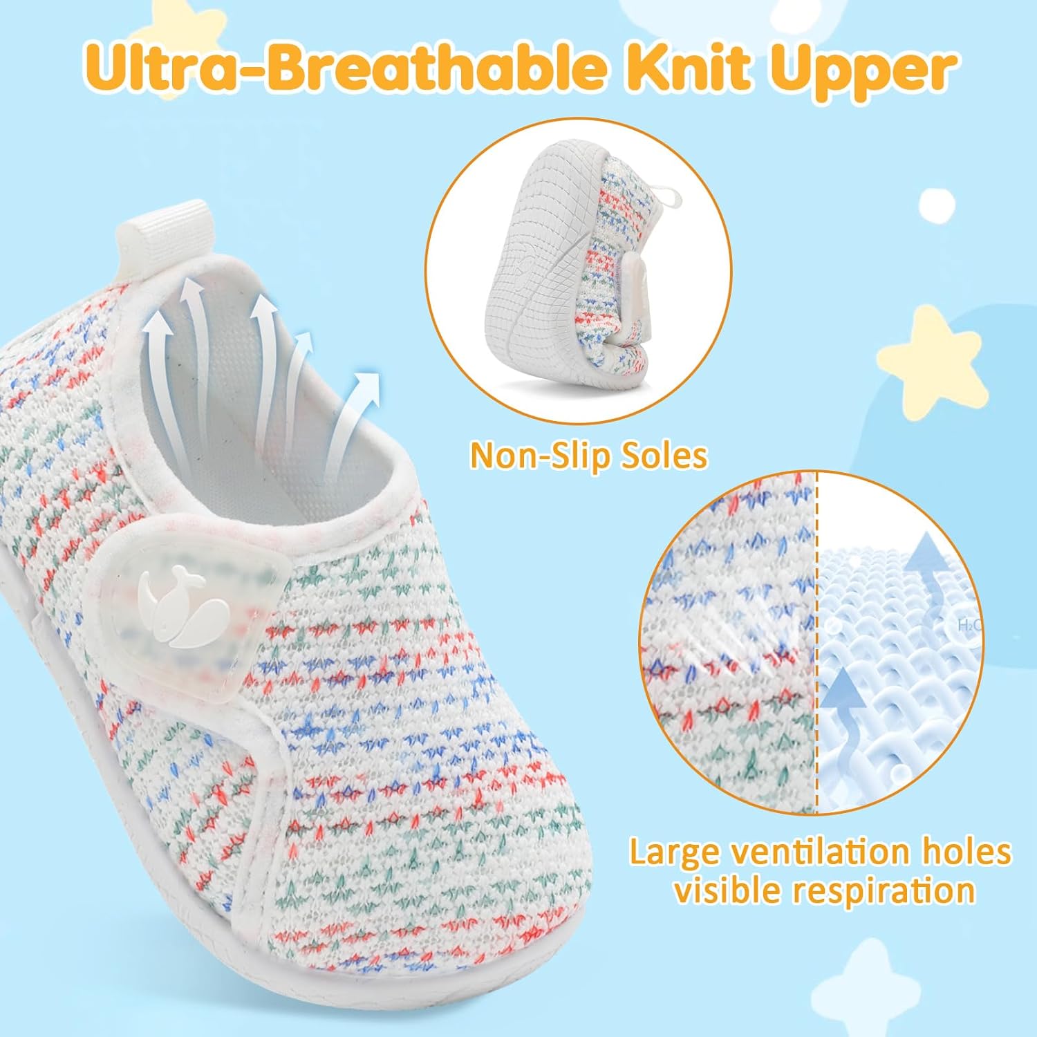 - Breathable and comfortable:Knitted Mesh Upper offers comfort and air permeability.Keep your child away from foot smelly.Also,high-quality upper provides good ductility to support children's active walking, running,and playing