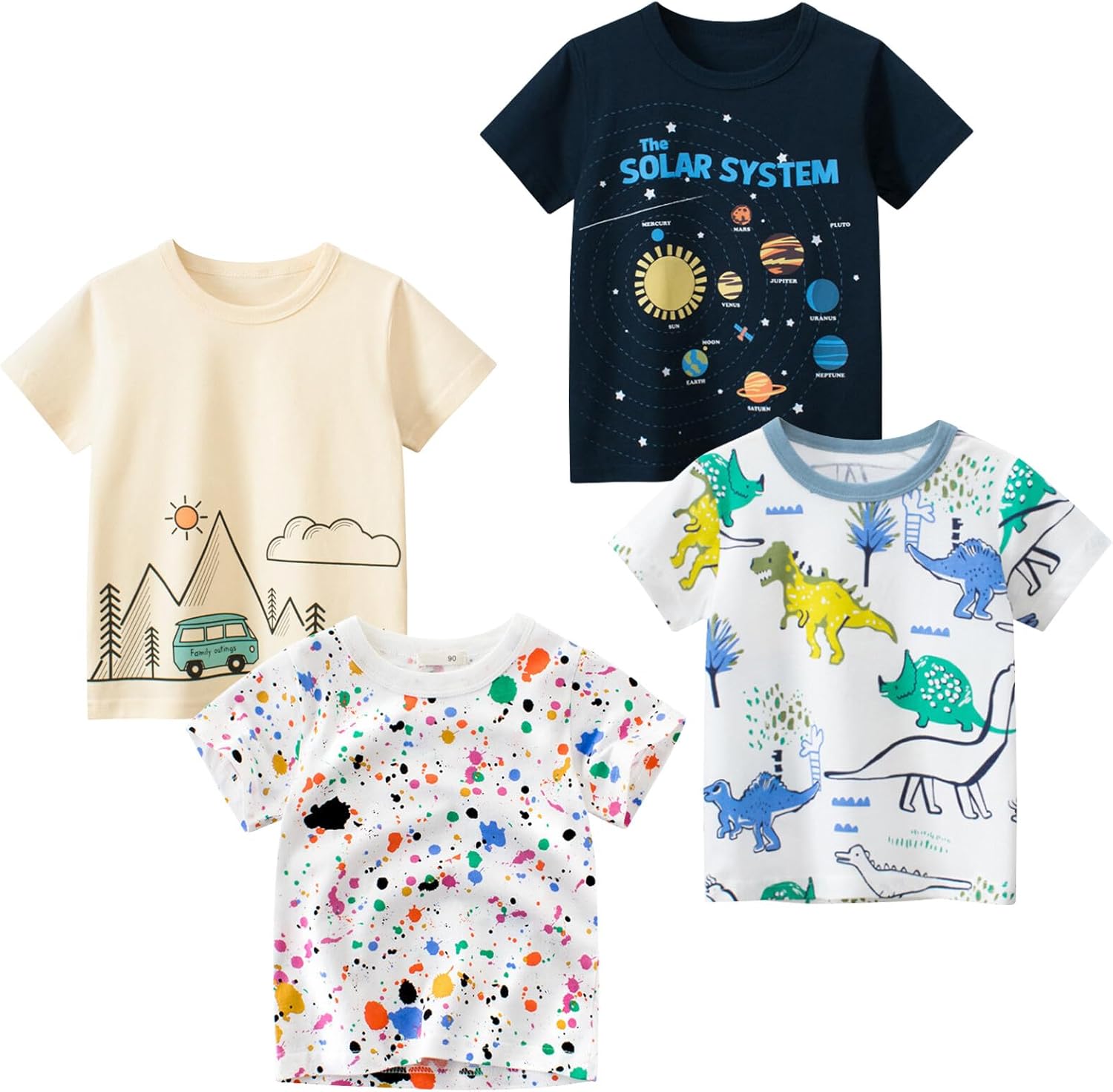 Boys' 4-Pack Excavator Short Sleeve Crewneck T-Shirts Top Tee Size 2-7 Years Toddler Boys' Value Pack Cotton T-Shirt