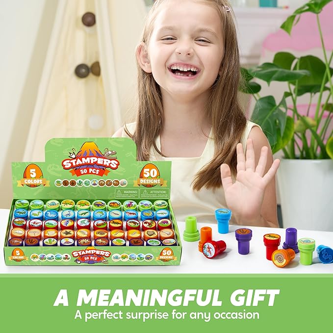 - Variety Pack: This set includes 50 colorful stampers featuring a wide range of fun and vibrant designs like sea dinosaurs, prehistoric insects, fossils, flying dinosaurs and etc.