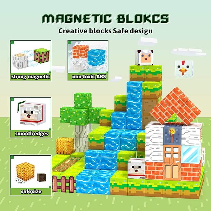 - Magnetic Blocks - Farm Life Set: Step into a delightful world of farm with our magnetic building blocks set! Featuring a little farmer, along with lively animals and vibrant countryside, kids can create their bustling farm world.They can build cozy house, look after their cute pet, light up the night with torches, and explore the beauty around them. Unleash your children's creative thinking as they enjoy hours of imaginative role-play fun!