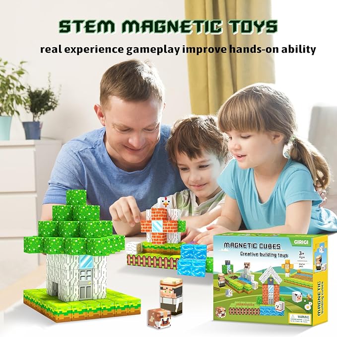 - All-compatible Powerful Magnetic Cubes: GIRIGI magnetic blocks are compatible with popular market brands, allowing you to expand your collection by adding more building blocks. More cubes, more fun! Unlike other inferior magnetic toys with only 6 magnets, GIRIGI magnetic cubes feature a superior 8-magnet design. The stronger magnetic bond allows for more flexible and sturdy construction of unexpected landscape structures. Play with any magnetic surfaces(like refrigerator or board) for more fun!
