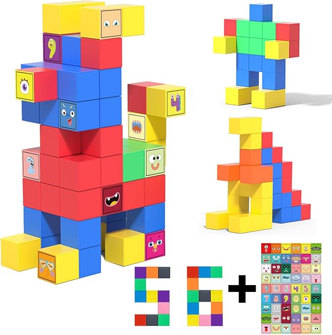 - Spark Creativity with 56 Magnetic Cubes & 54 Educational Stickers – This set of magnetic blocks and fun stickers lets kids ages 3-8 create endless designs, from colorful towers to imaginative shapes, encouraging creativity, learning, and hands-on building skills.