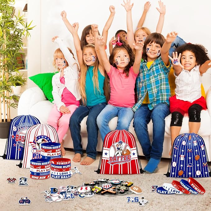 - Ultimate Baseball Party Kit: Planning a baseball-themed birthday party? This baseball party favors includes 20 baseball drawstring bags, 20 keychains, 20 rubber bracelets, and 50 stickers, all themed around the exciting world of baseball. Surprise your guests with these awesome baseball themed favors