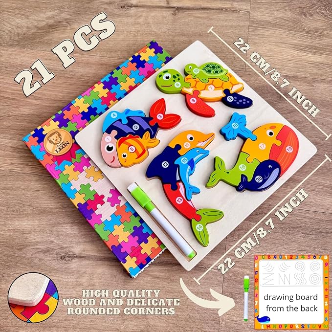 - 🎅🏻 Developing Fine Motor Skills and Learning Through Puzzles. These educational wooden puzzles promote fine motor skills, focus, and logical thinking in toddlers. Inspired by Montessori principles, they help children memorize images and explore new concepts, making learning engaging and hands-on.