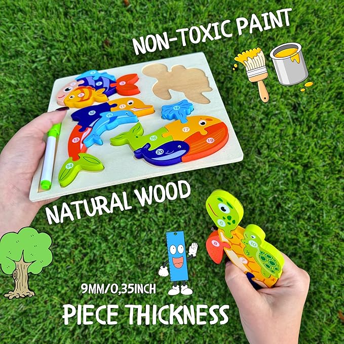 - 🎄 Wooden Toddler Puzzles for Ages 3-5 – Safe and Eco-Friendly. Our wooden jigsaw puzzles for children aged 3-5 are crafted from high-quality, natural materials. As Montessori-inspired learning toys, they are certified, non-toxic, and designed for little hands, ensuring both safety and durability.