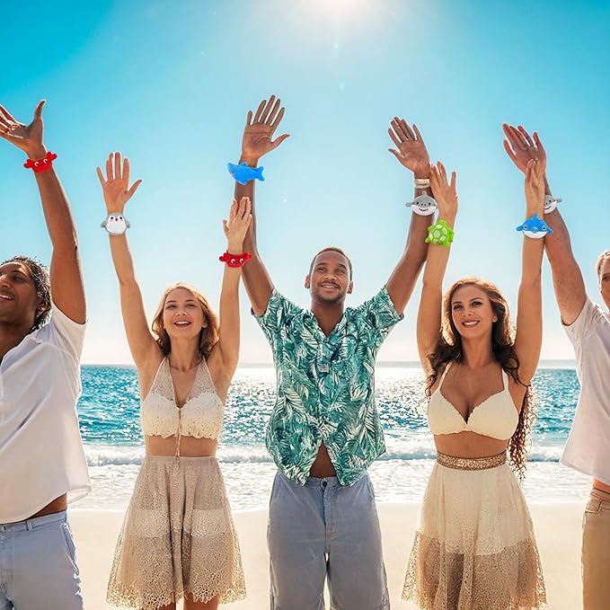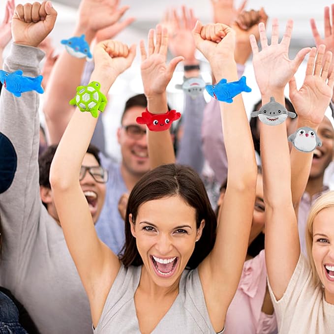 - Stuffed Animal Slap Bracelets for Ocean Animal Enthusiasts: A set of 12 plush animal-themed slap bracelets featuring cute and intricate designs of crab, turtle, shark head, bubble fish, penguin and shark body, in 6 different styles.
