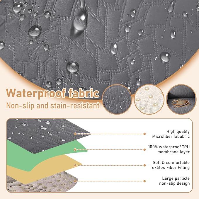 - 100% Waterproof Protection: The top of the recliner covers is coated with a waterproof layer, complemented by a TPU waterproof layer in the middle, offering a dual defense system to ensure 100% waterproof and leak-proof functionality. This innovative waterproof feature serves as a shield to safeguard your recliner from any spills, liquid mishaps, and daily wear.