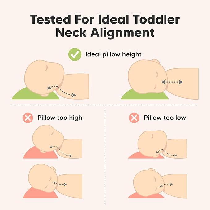 - Fun-Sized, Great Support - KeaBabies Toddler Pillow gently support the neck and head, during sleep to promote proper spinal alignment. Offering a perfect balance of softness and firmness at an ideal height, tailored for your toddler's healthy growth.