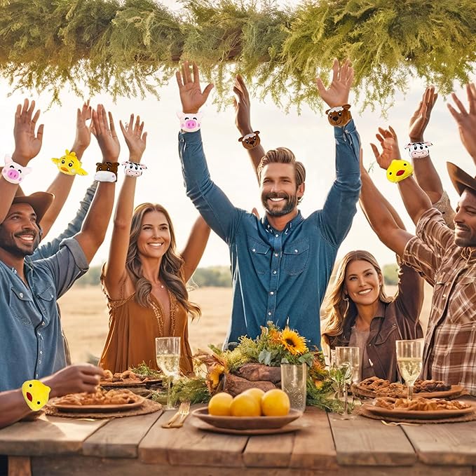 - Stuffed Animal Slap Bracelets for Farm Animal Enthusiasts: A set of 12 plush animal-themed slap bracelets featuring cute and intricate designs of cows, horses, sheep, chickens, ducks and pigs, in 6 different styles.