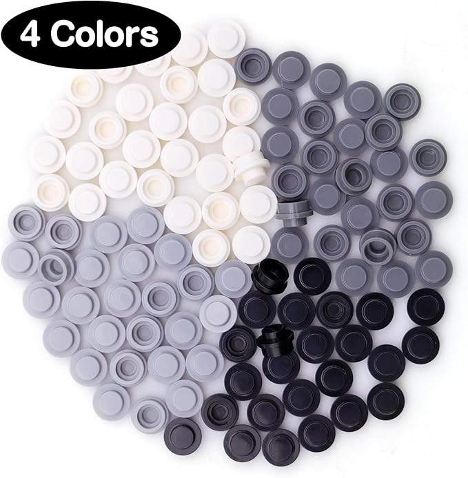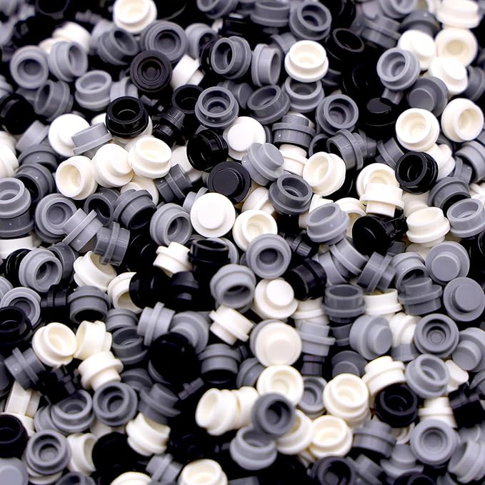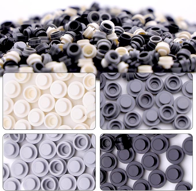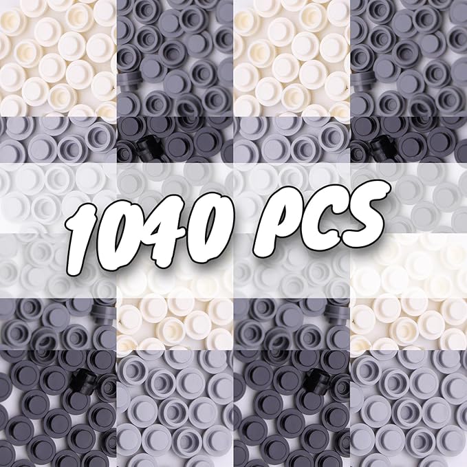 1040PCS Building Bricks Dots-Black and White Round Plates with Custom Pixel Building Blocks - Transparent Pieces, Studs and Bulk for MOC Mosaic Accessories Kit, Compatible with Leading Brands