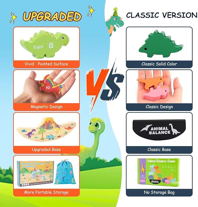 - Educational and Interactive Design:Discover the ultimate learning tool with our Magnetic Dinosaur Stacking Toy! Featuring strong magnets for easy and correct matching, each piece showcases numbers on one side and their English equivalents on the other. Perfect for teaching numbers, colors, and introducing various dinosaur species, this toy encourages hands-on play and early STEM learning for kids aged 1-7