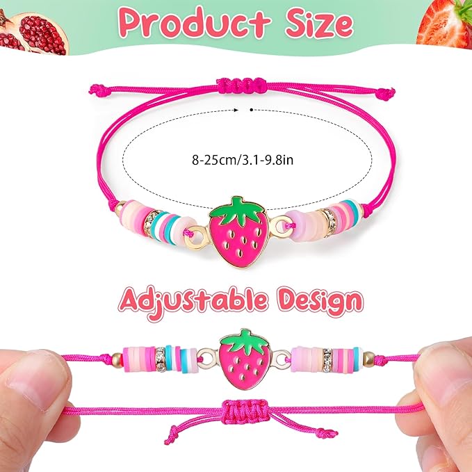- Premium Adjustable Bracelets: Made of premium alloy material, ensuring that each fruit bracelet is lightweight, reliable and durable. The size of the girls bracelet is adjustable, which is suitable for most girls' wrists and can be worn for a long time and easily take off. Girls can enjoy the princess summer party without worries