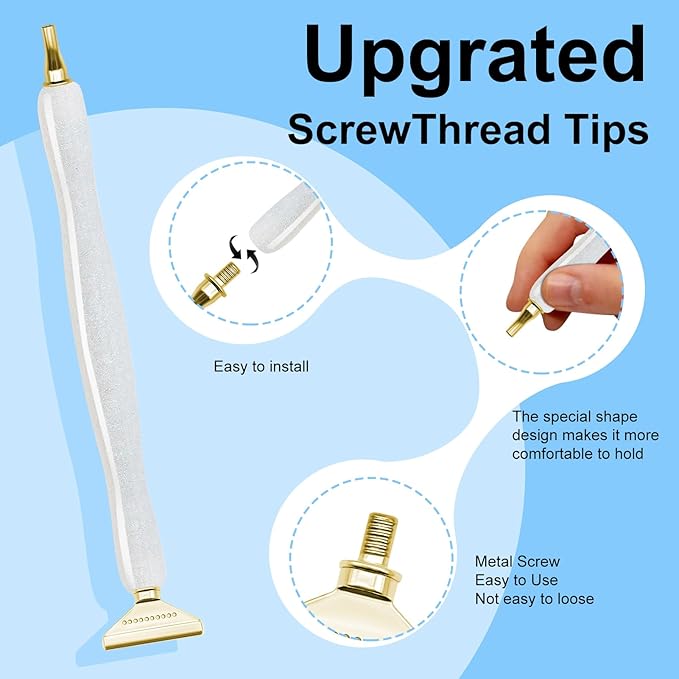 - Equipped with high-quality metal threaded tips, these diamond art pens tools offer exceptional durability and a snug fit. You don't have to be concerned about the tips coming loose or getting damaged easily, ensuring a smooth painting experience.