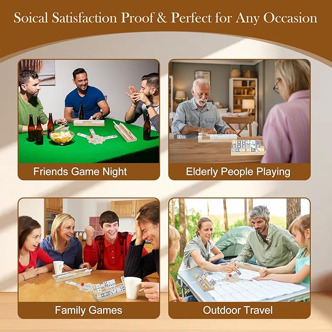 - INCLUDES 4 WOODEN RACKS TO KEEP TILES ORGANIZED: Soopotay mexican train dominoes set comes with 4 wooden tile holders, which help to keep tiles organized and stable, enabling players to concentrate on strategic gameplay without interruptions