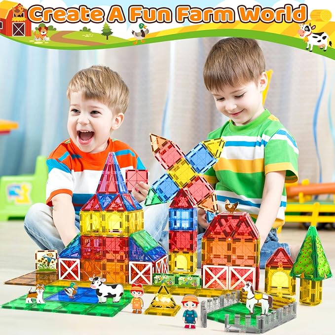 - Magnetic Tiles Animals Set: 44PCS Magnetic Building Blocks Set features realistic 5 animals and 2 farmers, adorned with rich patterns and vibrant colors, which add creativity and unique elements to your child's playtime. The unlimited connectivity of magnetic tiles offers endless possibilities for open-ended play, ensuring hours of engaging building time. Kids can build a farm houses for farmer and animals to living in the farm.