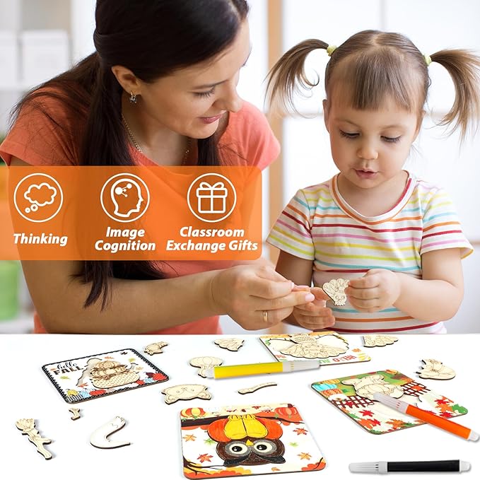 - Ideal gift for kids: Our Wooden Puzzle set is a fantastic gift option for birthdays, thanksgiving day,Thanksgiving Autumn Fall Harvest Party and other holidays. With wooden puzzle pieces, these Educational Learning Autumn Puzzles are nice for boys and girls aged 3 to 8. They create cherished family moments as everyone interacts and builds colorful childhood memories together.