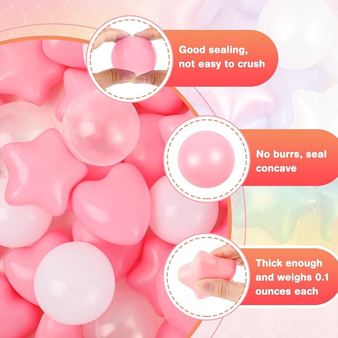 100 Pieces Ball Pit Balls Plastic Colorful Balls for Ball Pit Five Pointed Star Heart Round Ocean Soft Ball 2.17 Inch for Baby Kid Playpen Friendship Party Decoration(Pink White Clear)