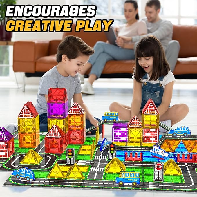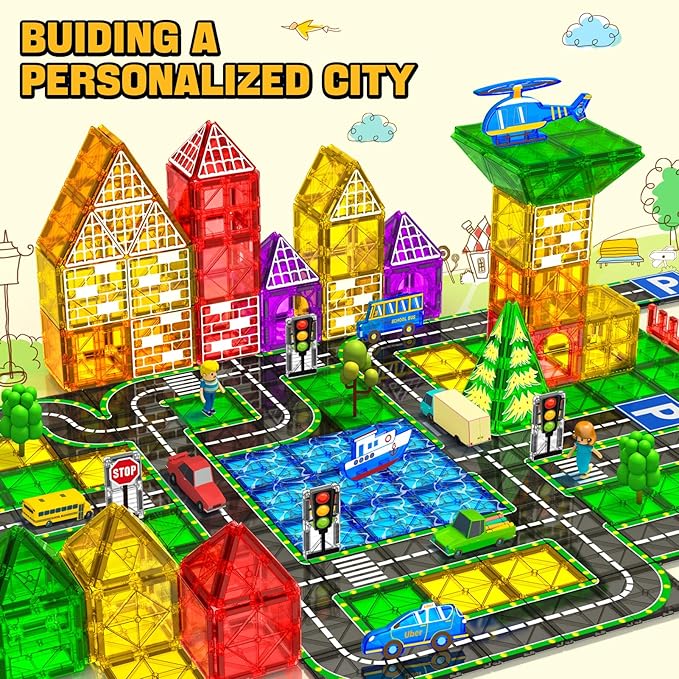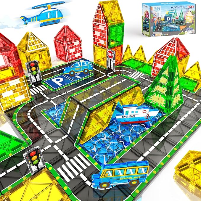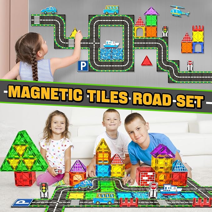 - 【Perfect Gift for Any Occasion】A favorite among kids,our magnetic blocks road set is ideal gifts for 3 4 5 years old girl boy family toys,learning tools,day care centers,preschool,sensory toys for children,and also gift for festivals or party favors like Birthday,Graduation,Back to School Gifts,Children's Day,Christmas,Easter,Halloween,etc.