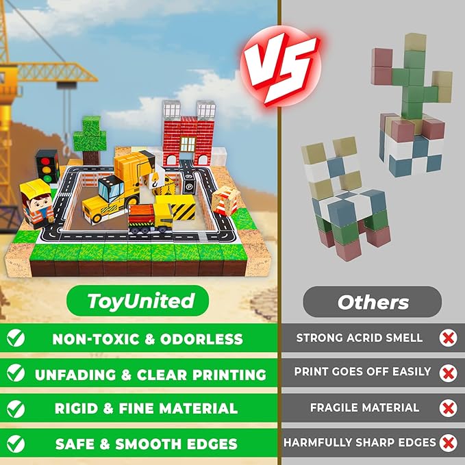 • 【Interactive & Entertaining】 The magnetic building blocks set includes an instruction manual paper and 14 different patterns blocks. These magnetic blocks for kids can build structures, and scenes with these magnetic toys. Each cube connects easily for unlimited stacking and construction variations.