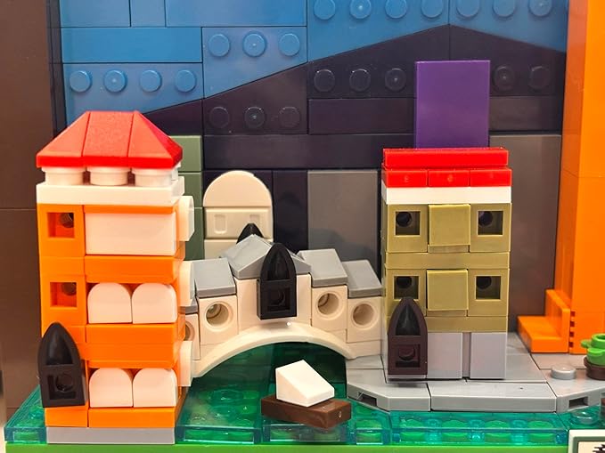 - 【Venice Skyline Features】This Venice postcard wall art building set is highly detailed architecture interpretation of the Paris skyline, featuring famous landmarks like the rialto bridge, st. Marks basilica, st. Mark's campanile, as well as rivers and canals are represented by green tiles in the baseplate, it will be bringing you fantastic memories of Venice