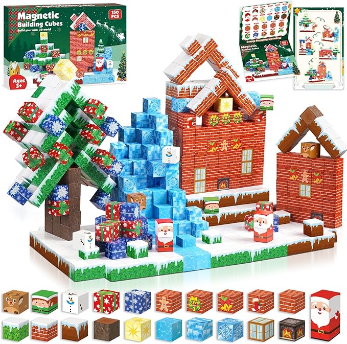 - 【 Build Frozen Christmas Castle Magnetic Cube Kit】Including 150 Magnetic cubes in 21 colors. Idea booklet with the storyline and beautiful patterns, keep them busy in clever ways. Annexfun magnetic activity cubes are made of high-quality ABS material and crafted with the round edges and the right size. Our magnetic cubes kit with super strong internal magnetic, which is easier for toddlers ages 3+ to stick the cubes together and make builds sturdy. Perfect STEM toys help kids gain a deeper understanding of the structure and learn about magnetic properties!