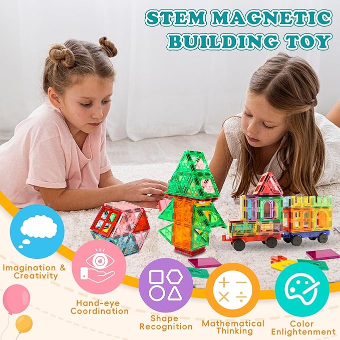 - 【Educational Benefits】Stlloys magnetic tiles go beyond fun. Each piece fosters spatial awareness, creativity, and logical thinking. A great STEM magnetic toys, these blocks encourage exploration, helping kids build essential problem solving skills in an enjoyable way