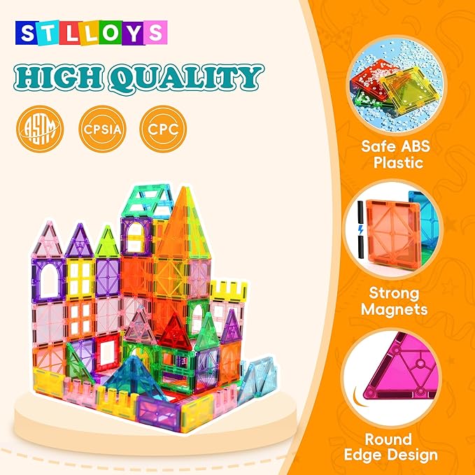 - 【Safety First】Stlloys prioritizes child safety. Our magnetic tiles toys are "CPSIA" and "ASTM" certified. The smooth, rounded edges and securely enclosed magnets provide playtime for young builders, designed to last. The sensory toy is fit for children ages 5 6 7 8 9 10 11 boys and girls