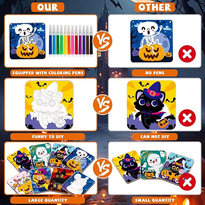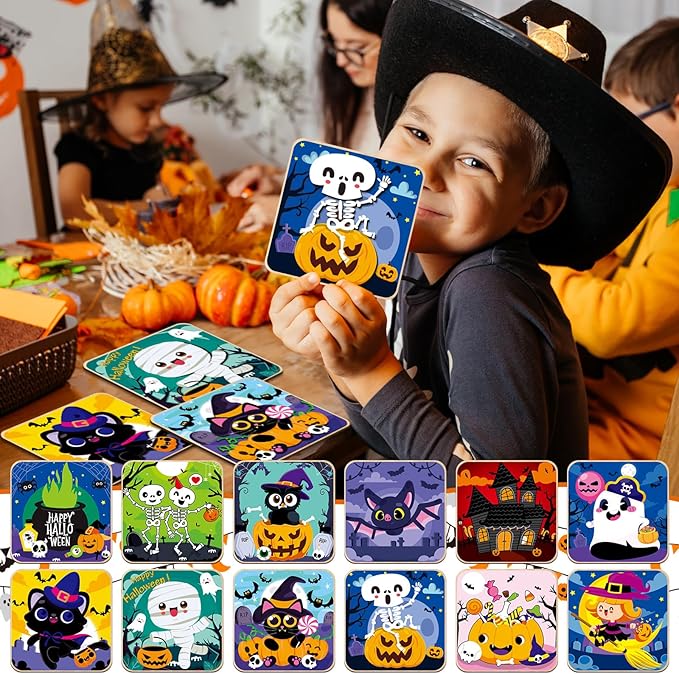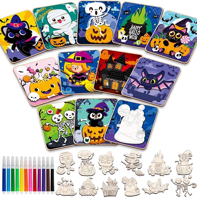 - Halloween gifts designed for kids - This Halloween wooden slices for toddlers comprises 12 packs Halloween Wooden Puzzles that effortlessly fit together, each board measures 14.7*14.7 cm/5.8*5.8 inches. All neatly packed in a vibrant box for easy storage with multiple colors of coloring pens. Designed with 12 styles, this Jigsaw Puzzle for Halloween are wonderful for kids, boys, girls, toddlers, Halloween toys, Halloween gifts, Halloween treats, Halloween party favors, Halloween treat bags.
