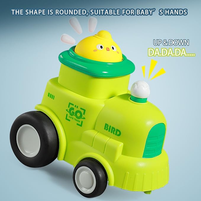 - Easy-Press Design for Toddlers Simply press down on the cockpit and let go—the train zooms forward without batteries! Powered by pressure and inertia, it’s easy for little hands to operate and provides endless entertainment. A great first toy for 1-3 year olds to develop fine motor skills.