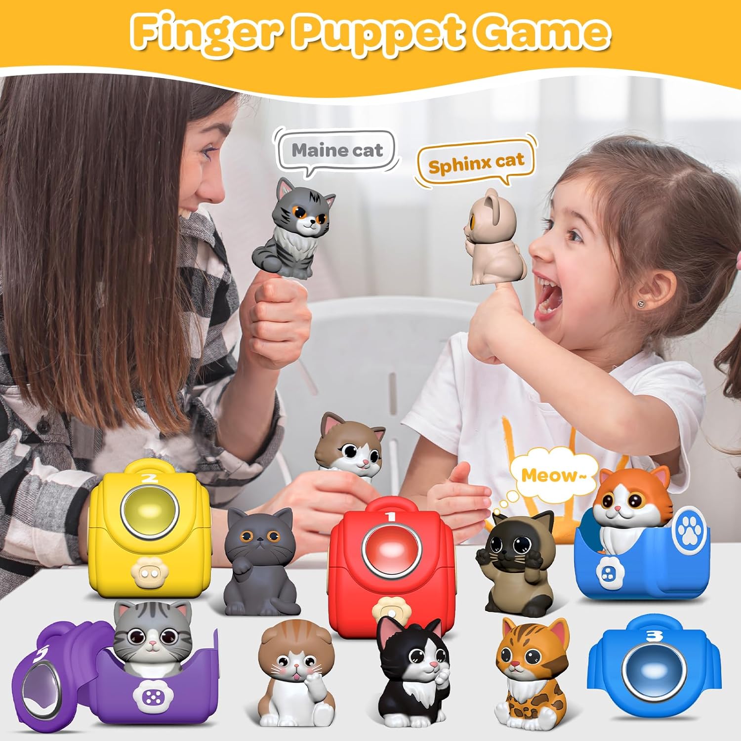 - 🐱Toddler Learning Toy :This Montessori toy for 1 year old is not only for fun, it is also a great early development toy. 10 cute cats finger puppets with real features can help toddler aged 2-3 recognize cats breeds. The top of cat bag is printed with dots that correspond to the numbers 1 to 10 on the bottom. Children will develop counting, sorting and color matching skills when they have fun with these cute cats learning toys for toddlers age 1-2.