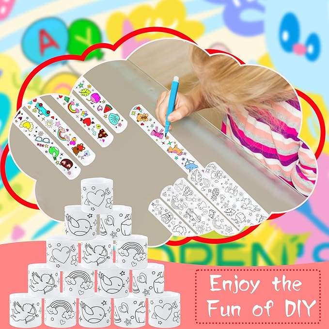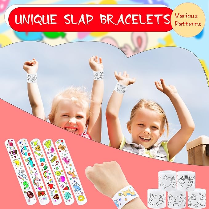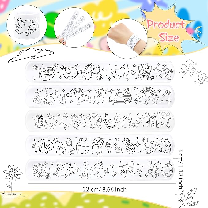 - 【Suitable Occasion】: Coloring Cartoon Slap Bracelets is perfect for school art classes, craft classes, children's theme parties, birthday parties, DIY parties, gift bag fillers, classroom rewards, parent-child activities, etc., bringing endless fun to your life and leaving unforgettable memories