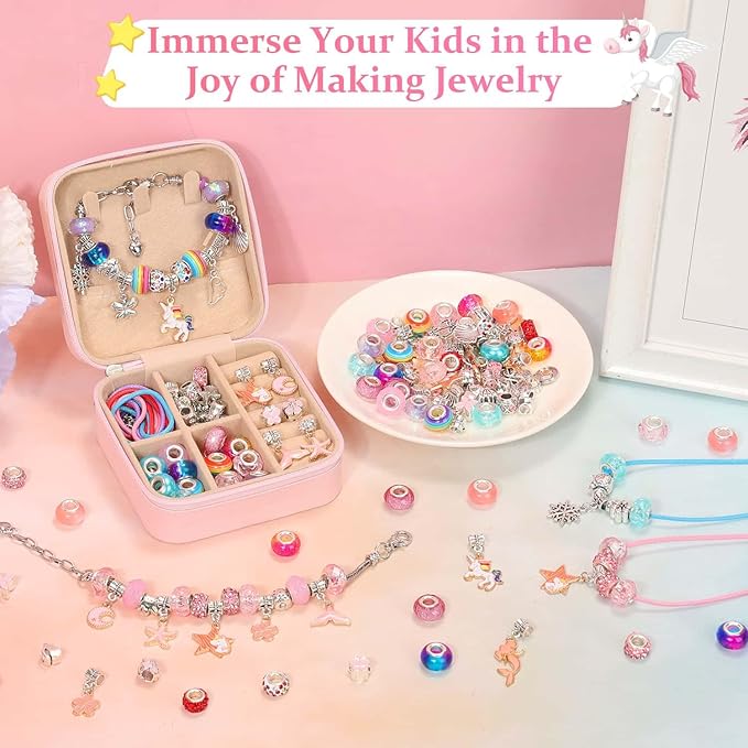 • Dream Gift for Little Girls - The charm necklace making kit for girls 8 9 10 11 12 year old is an ideal gift. Exquisite bracelet case makes girls' toys great arts and crafts kit for kids ages 8-12 birthday parties, New Year, and all kinds of festivals. Be ready to surprise your girls with this DIY bracelet making kit on their special day